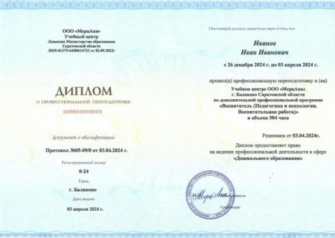 После успешного прохождения обучения и сдачи итогового теста выдается Диплом о профессиональной переподготовке, действительное во всех регионах Российской Федерации.